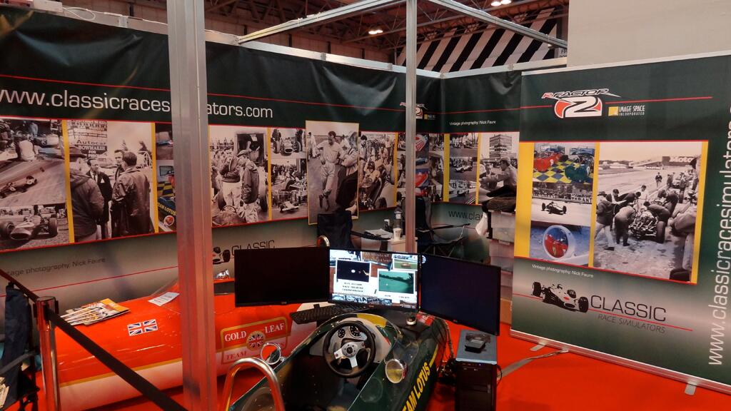 Autosport International 2014 (ASI ’14) has been going on this week in Birmingham, England featuring racecars and the stars that pilot them. The show also featured many vendors from the motorsports world but one in particular caught my attention. This photo from the official rFactor 2 twitter account introduced me to Classic Race Simulators.