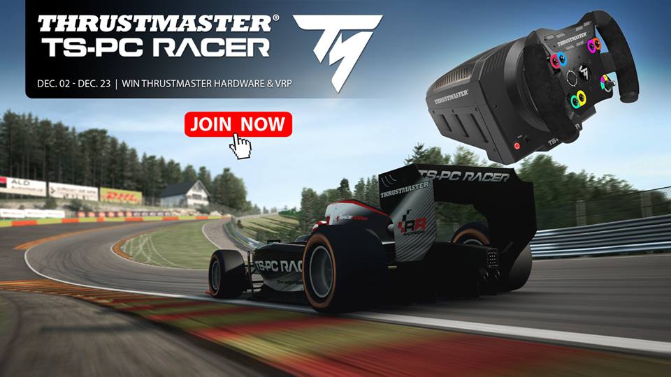 To celebrate the launch of a brand new top of the line PC racing wheel from Thrustmaster, we have a challenge for you. Jump behind the wheel of the Formula RaceRoom 2 in special Thrustmaster livery and push it around the twists and turns of Spa-Francorchamps faster than anyone else. High end pc racing wheels, pedals, shifters as well as vRP is up for grabs.