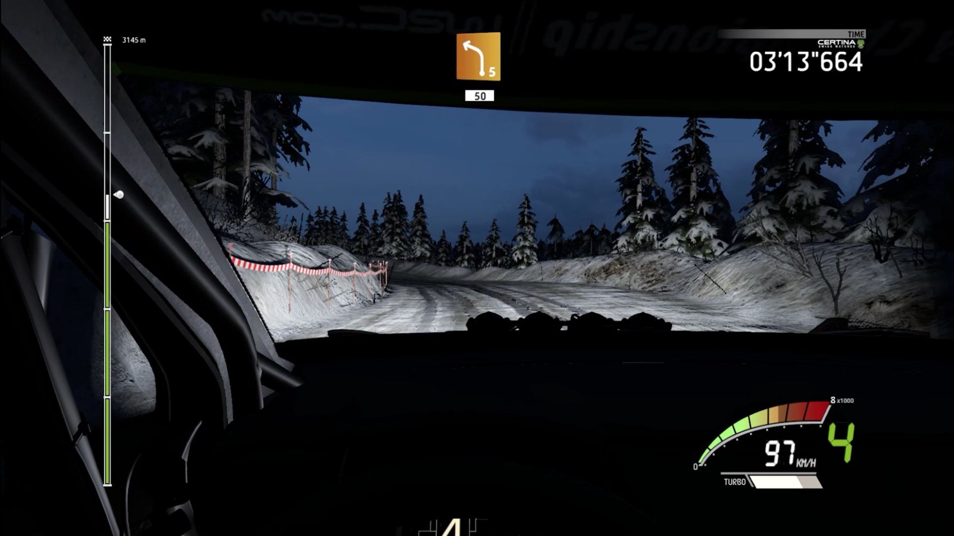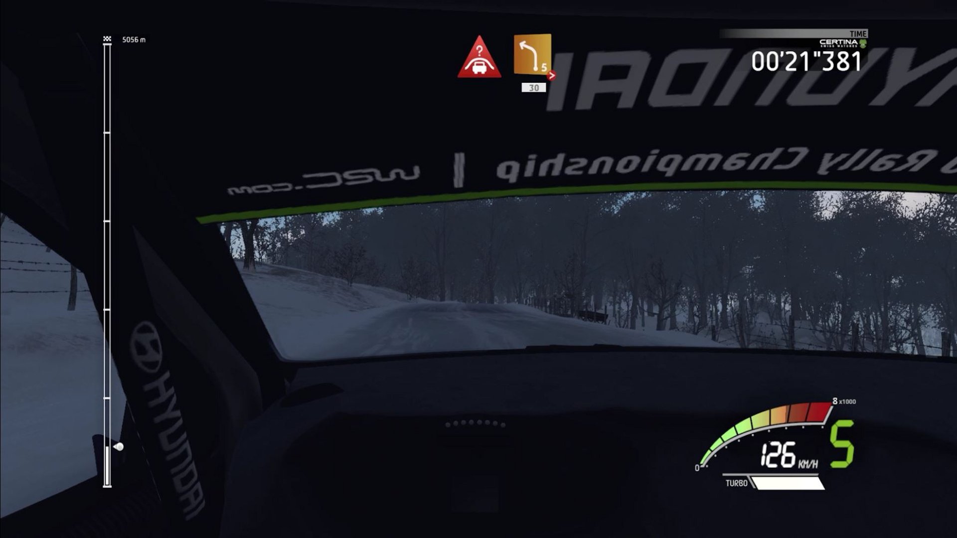 You can adjust how much detail you want from the co-driver and their timing from “Far ahead” to “Very late”. I chosed “Late,” and for the most part, the timing was consistent but there were times when he seemed to get ahead of himself.