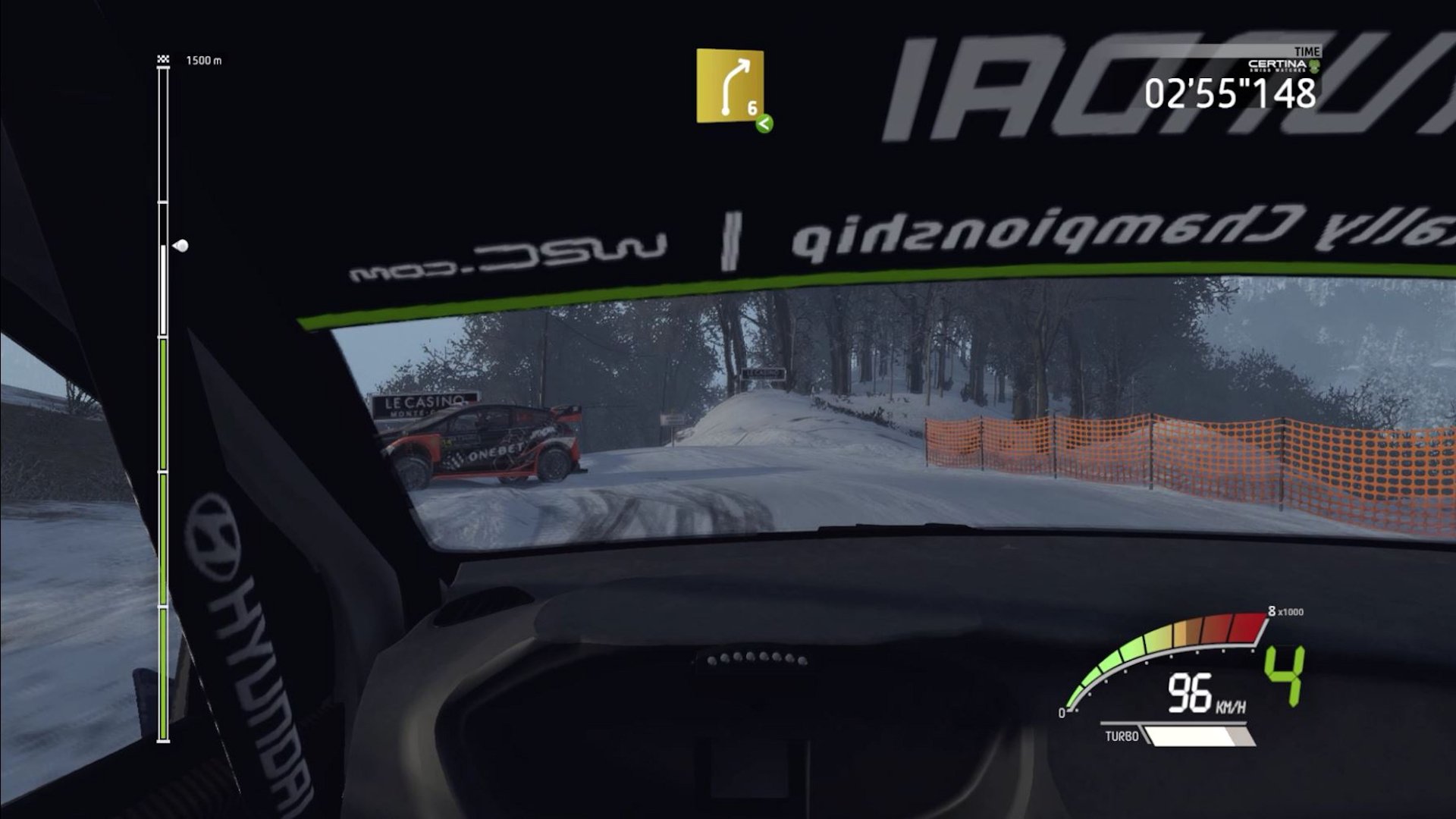 On the pros side, the graphics are better than WRC 6. The driver model and fans on the side of the road look pretty good. As mentioned earlier, stages have great details. The shrubbery, fences and markers all bring immersion. The lighting at night looks really cool. Glossy and matte paint on the cars is done well. Dirt on the car looks good and you have 100% control over your wipers to remove it. Tire tracks behind the cars on replays just add to the already very detailed track surface, which probably is the best looking detail in the game.