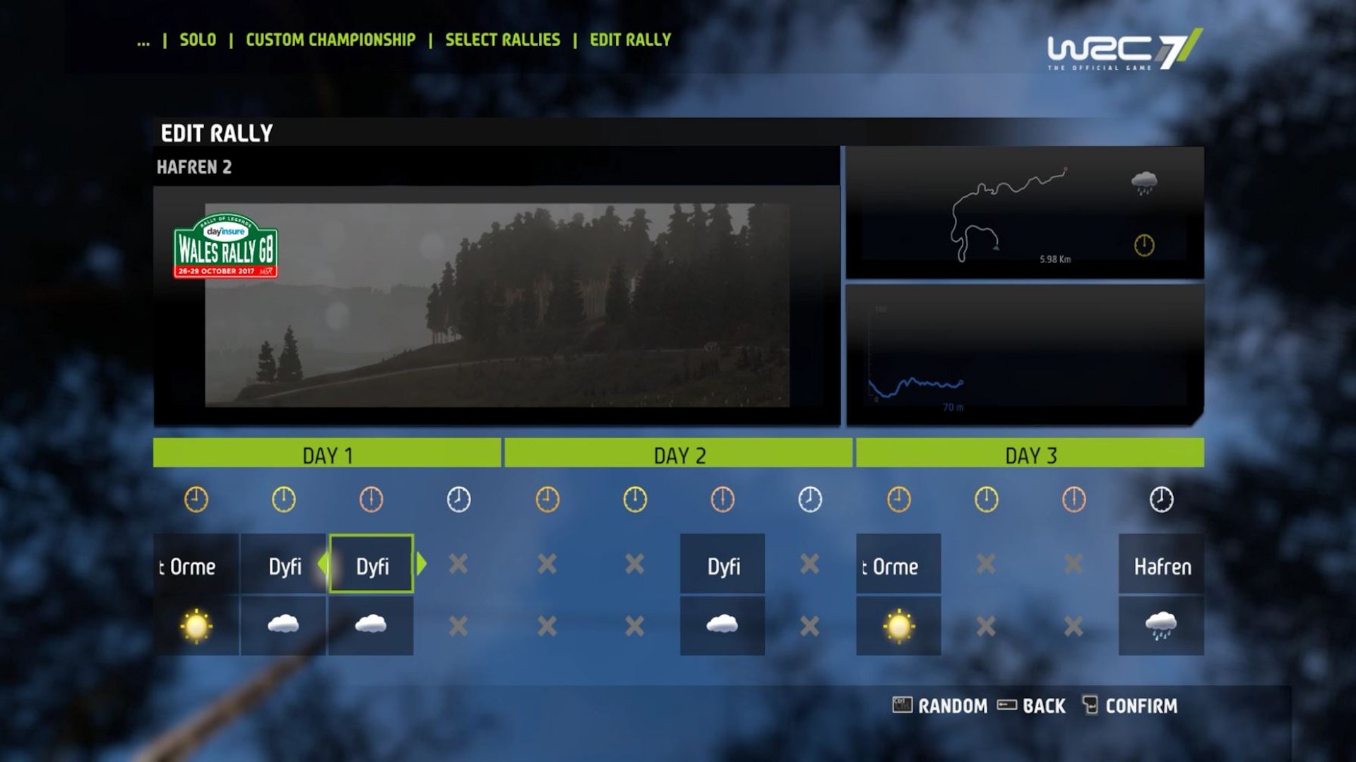 If starting off in lower class cars or religiously following the official WRC schedule isn’t your cup of tea, then you can create a Custom Championship. Pick a car, pick rallies, pick stages, pick what days to run stages, pick time of day, pick weather, and off you go. You can have three Custom Championships running at one time and we found the customization and “drive anything” approach to be pretty appealing.