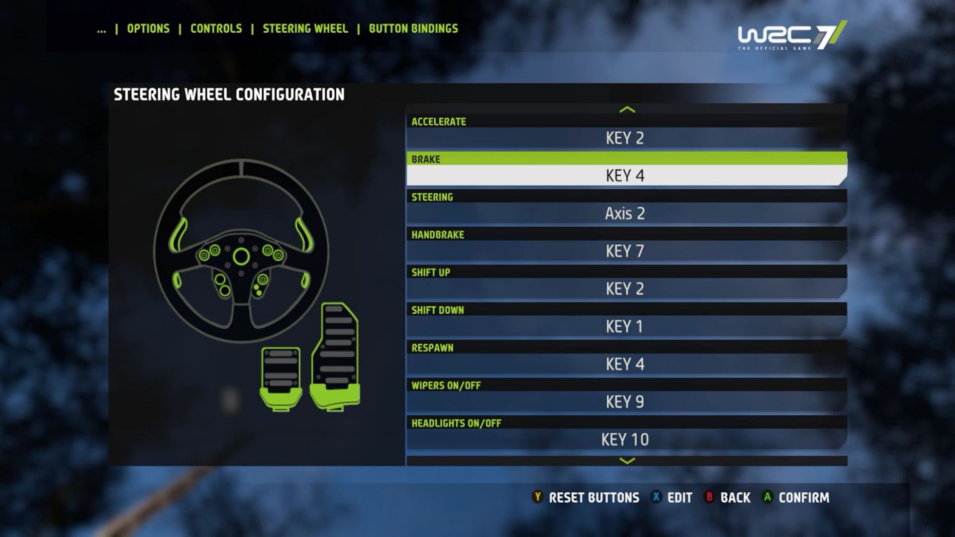 Wheel and pedal “Axis Detection” in WRC 7 is a good idea with terrible execution. The whole idea is that if you have an unsupported wheel, you can still use it thanks the Axis Detection.